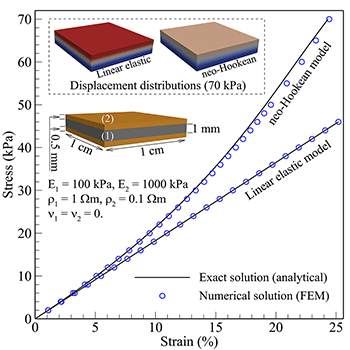 The polymer-based conductive composites have shown great potential for sensing applications because of their high flexibility and sensitivity. We developed a numerical model based on the Finite Element Method, which offers micro- and macro-level analyses from mechanical to electrostatic predictions.